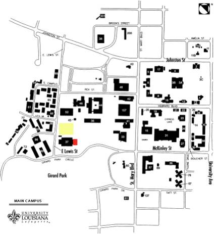 The Visual Arts Department is located in Fletcher Hall at the corner of E Lewis St and Girard Park Circle on the ULL campus.